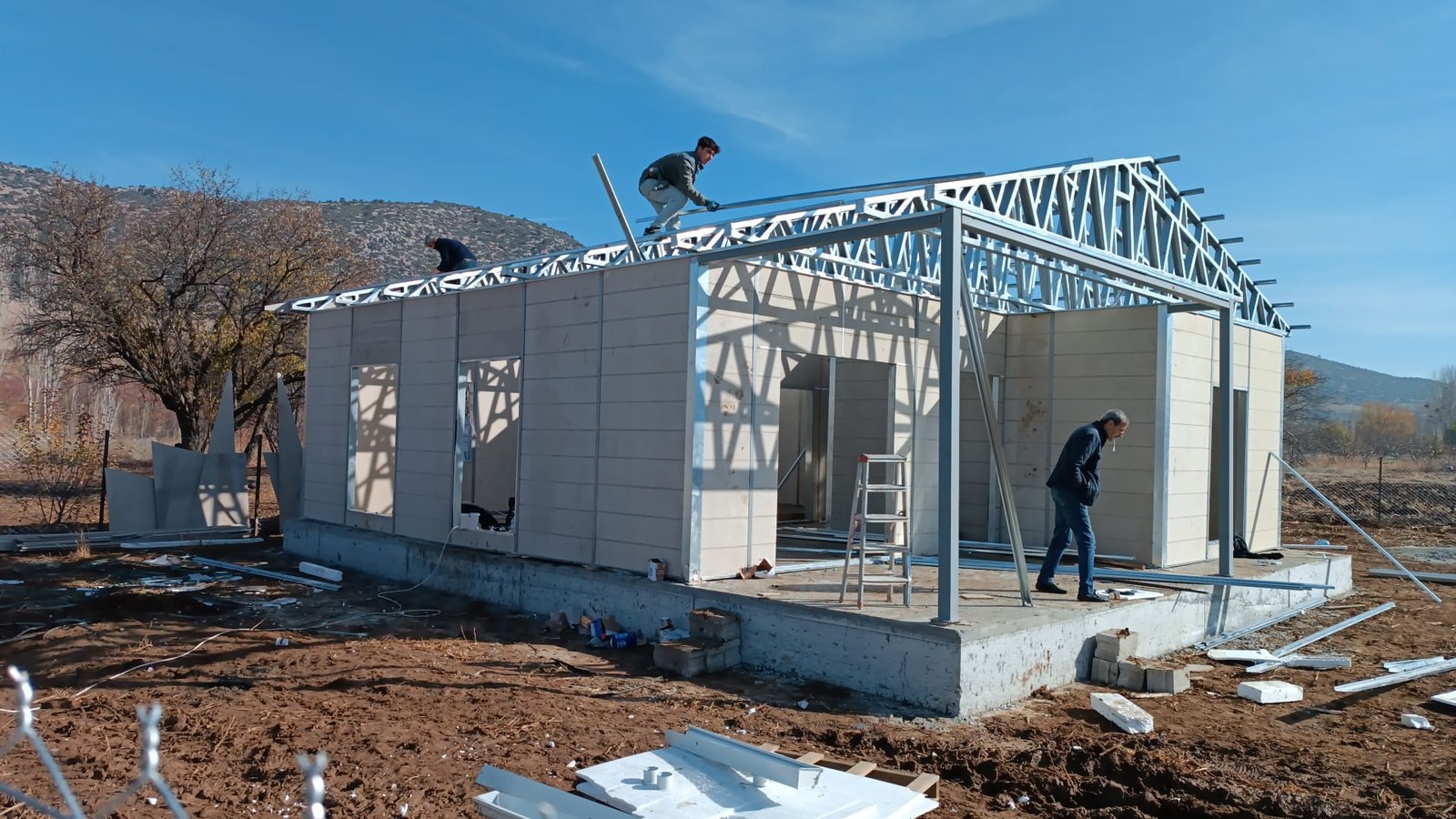 Gelişen teknoloji ile birlikte konut ihtiyaçlarına modern çözümler üretiyoruz. Son projemiz olan çelik ev, hem dayanıklılığı hem de estetik görünümü ile ön plana çıkıyor. Hafif çelik sistemle inşa edilen bu yapımız, kısa sürede tamamlanarak müşterimize güvenli, konforlu ve uzun ömürlü bir yaşam alanı sundu.