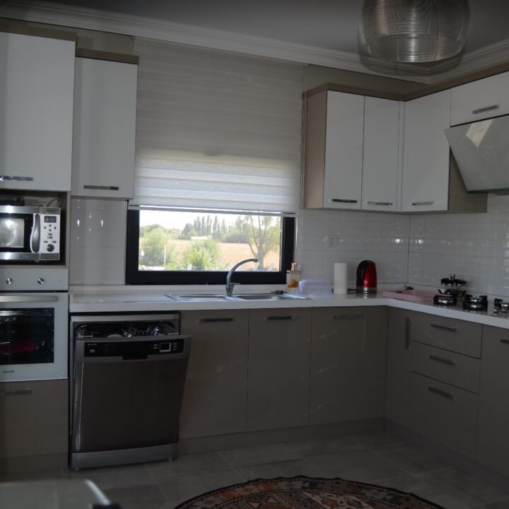 İç mekânlarda fonksiyonelliği ön planda tutarak modern çözümler geliştirdik. Geniş salon, şık mutfak ve modern banyolar, evin estetik bütünlüğünü tamamlayan unsurlar arasında. Özellikle mutfakta kullanılan yerleşim planı, hem ergonomik hem de şık bir kullanım alanı sunuyor. Banyoda ise şık seramik kaplamalar ve modern duş sistemleri ile zamansız bir tasarım anlayışı benimsendi.